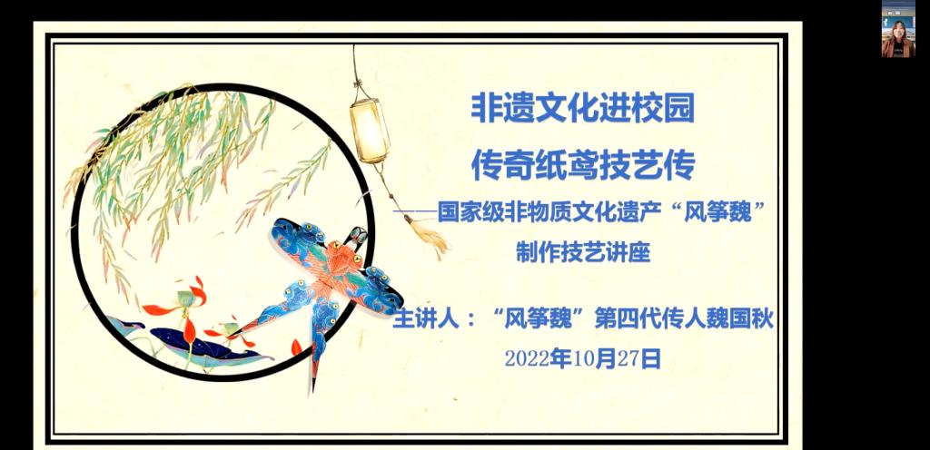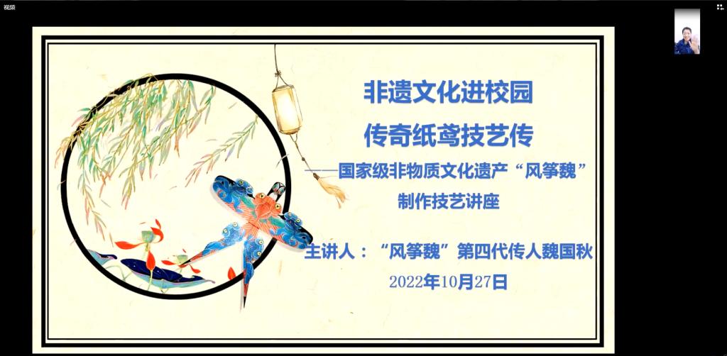 讲座最后,魏国秋回忆了自己童年时期与风筝的缘起,用诚挚的语言向广大学子呼吁传承风筝文化,继承非物质文化遗产,让风筝的生命力在一代又一代的传承中迸发其生命力。魏国秋老师的倾情讲授让更多的青年人了解和发扬传统风筝的制作工艺,学习非遗知识,感悟中华优秀传统文化的魅力。