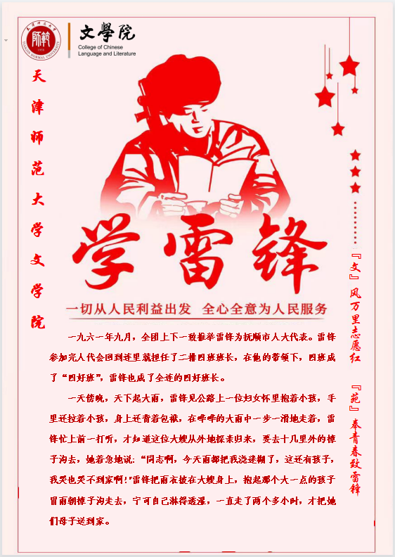 三月春风处处暖,雷锋精神代代传。雷锋,一个名字,一种精神,一座丰碑,感召了一辈辈同志不计小我、成就大我;激励了一代代青年义行善举、无私奉献。