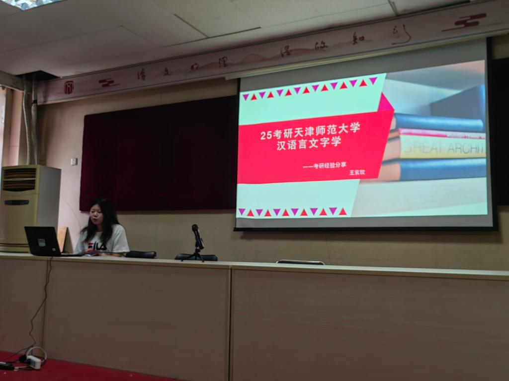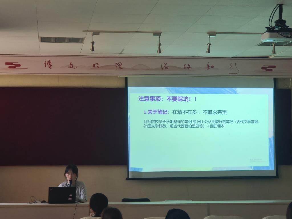 本次考研经验分享系列讲座划分为四个专场,共举办本院专场、本校专硕专场、外校专场、“保”“留”专场等4场讲座,邀请20位考研成功的同学分享他们的备考经验和方法。本次系列讲座共200余人次受益。在分享中,主讲同学就考研的择校思路、心态调整、注意事项、应试技巧、复习资料选择、学习效率等重点问题与同学们进行交流,并鼓励大家“山遥水远,不忘文学初心”。