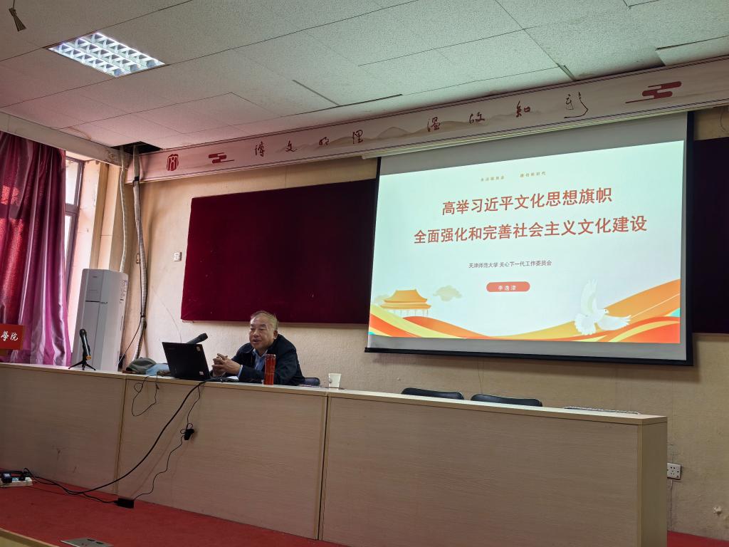 为进一步学习宣传贯彻习近平文化思想,11月7日下午,taptap体育党委邀请天津市教育系统关工委“习近平新时代中国特色社会主义思想和党的二十大精神研学基地”理论宣讲团成员,公司关心下一代工作委员会副主任、taptap体育教授李逸津为第70期入党积极分子作题为《高举习近平文化思想旗帜 全面强化和完善社会主义文化建设》的专题讲座。taptap体育辅导员代表、青年教师代表、员工党员和第70期入党积极分子参加。讲座由公司党委副书记、纪委书记魏晋雪主持。