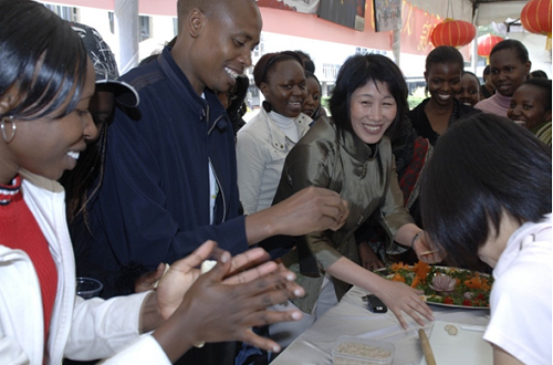 张德萍老师是一位曾深耕肯尼亚四年的古汉语教师,2007年作为孔子学院的一线教师,她到肯尼亚任教。期间,张老师与另三位老师、八位志愿者,在传授中国传统文化知识之余,组织和开办了“汉语角”……通过这样一批批老师的辛勤付出,如今,肯尼亚内罗毕大学孔子学院已成为全球示范孔子学院。