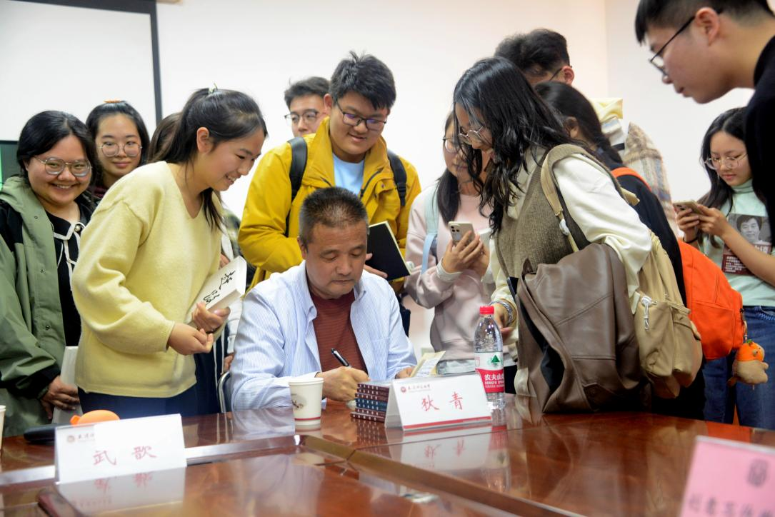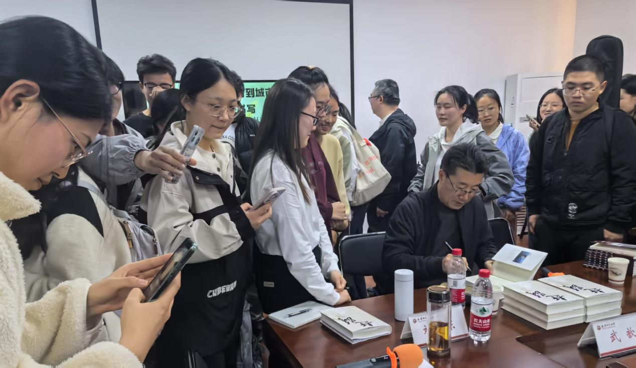 值得一提的是,在讲座开始时,来自2202班的徐闻韬演奏了钢琴曲《平凡之路》,来自2208班的陈渤则以吉他弹唱《敢问路在何方》为活动画上了句号。活动结束后,武歆、狄青向学院及员工赠书。
