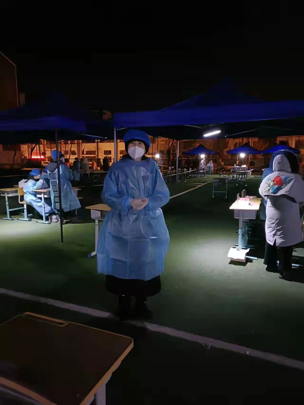 “这个小区十分需要人手,虽然有些远,但也没有犹豫打车就去了”,现代汉语教研室李洁老师到达居委会安排的指定社区后开始组织扫码登记,登记不能间断,到深夜时寒风凛冽,李老师手已经冻僵,但一想到居民和志愿者能早些回家休息,李老师搓了搓手继续干了起来。清晨五时,外国文学教研室王世欣老师按照社区要求打车到达指定点位后,迅速组织前来进行核酸检测的居民排队等待,在排队的过程中,王老师只要看到队伍一松散,就马上维持队伍秩序,“我之前就和社区报到了,随时待命,能在抗议中尽一份力,我感到很光荣!”
