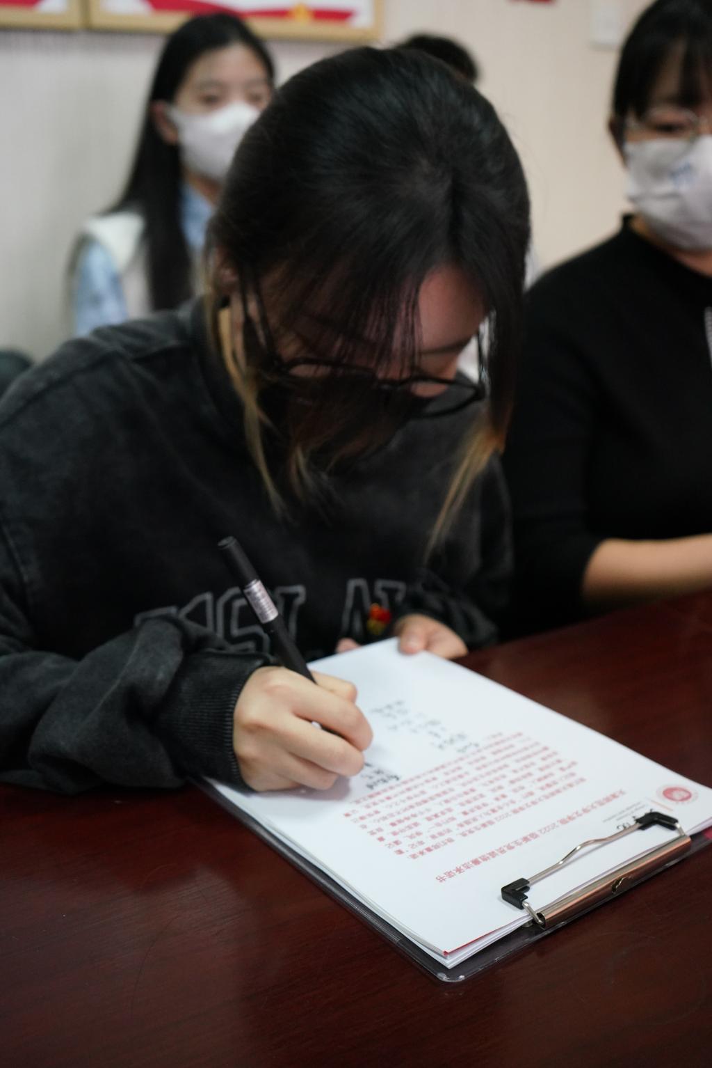 taptap体育党委副书记、纪委书记张杨开展新生党员廉洁教育。为激励广大党员把对党忠诚化作勇担使命的强大动力,她带领全体党员重温入党誓词。在场党员举起右手,声音铿锵,热情高涨,将对党的忠诚与热爱凝聚在声声誓言中。随后,全体2022级研究生新生党员认真阅读《诚信廉洁承诺书》并逐一在承诺书上郑重签名。
