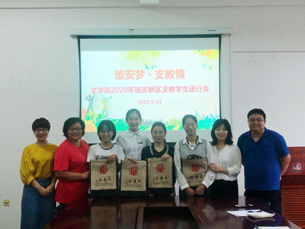 为积极落实学校选派优秀员工赴雄安新区支教工作,学院高度重视、认真组织,“3+1+2”卓越教师培养计划2017级本科生刘畅、李雯、靳人人、孙端峰四名同学在接到雄安新区支教通知后,第一时间响应号召,积极报名,成为公司第三期雄安支教团成员,其中刘畅同学被学校选为此次学校雄安支教团团长。