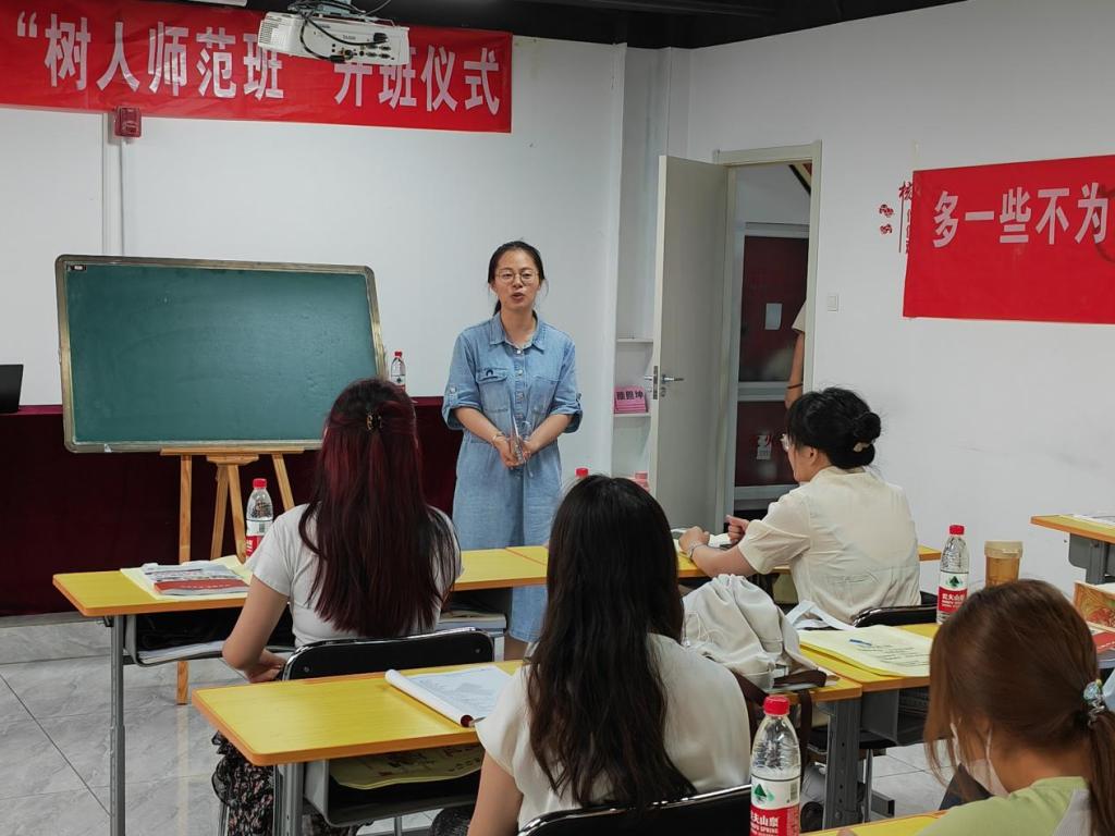 开班仪式上,taptap体育树人师范班培训基地揭牌成立,taptap体育2023届毕业生姚瑾、尚媛分别分享了教师招聘考试“上岸”经验。